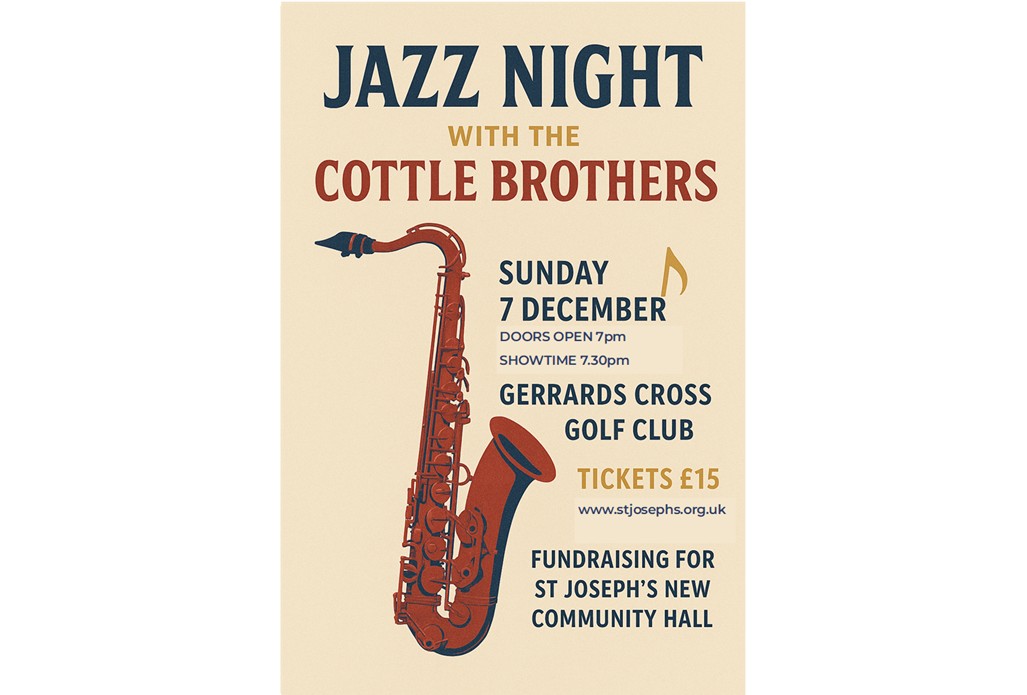We are delighted that the Cottle Brothers are entertaining us with a Jazz Night on Sunday 7th December in aid of St Joseph's New Community Hall.